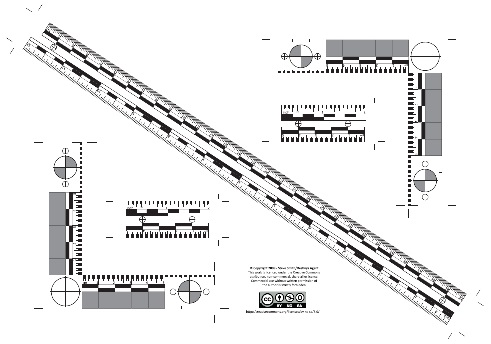 When taking a photograph of evidence (fingerprints, handprints, objects that are less than 12-inches long), it is useful to include a ruler or scale with the subject photographed. Forensic rulers are used in evidence collection and can be purchased from commercial forensic suppliers. Here is a .pdf on the internet that was designed and licensed for non-commercial purposes that can be downloaded and printed. Then the printed image can be laminated and used when you encounter evidence that you want to photograph.