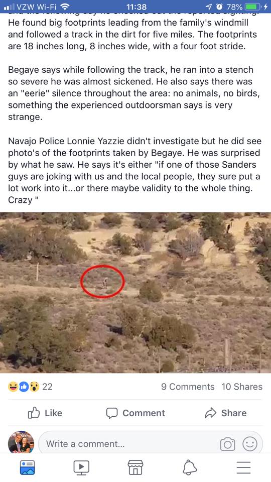 Navajo times published a story of a Bigfoot sighting