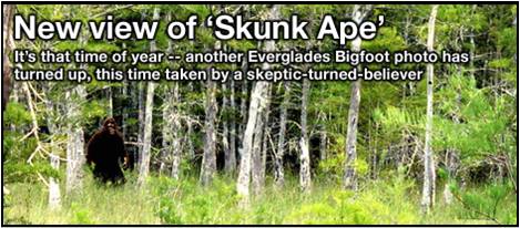 Naple News, Florida: Thursday, October 19, 2006 -- During its brief, sporadic emergences from the wilds of Southwest Florida, the skunk ape has a habit of showing up just long enough to get its picture taken.