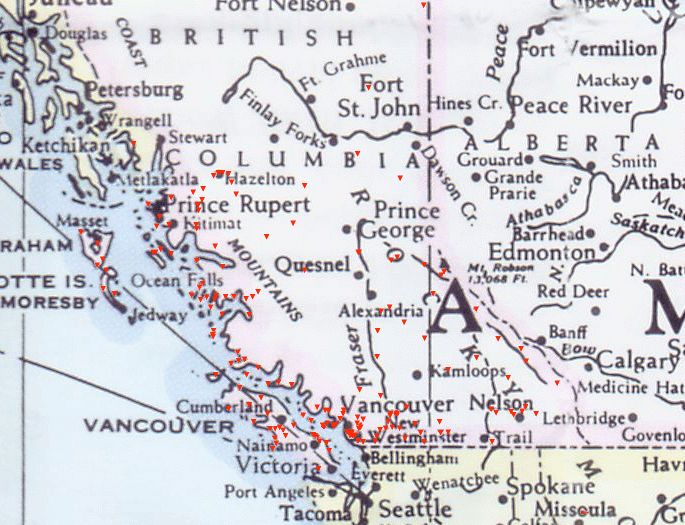British Columbia Sighting Map