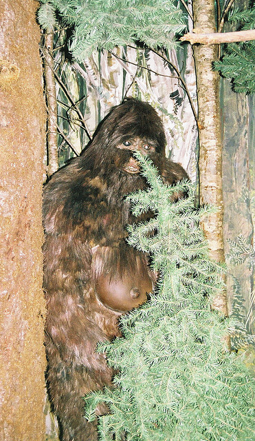 In Darren Naish’s Tetrapod Zoology posting, “Pouches, pockets and sacs in the heads, necks and chests of mammals, part 1: primates,” (whew, I’m exhausted by the title already), he takes on Sasquatch breasts, a bit. (Being an academic, I understand that “Bigfoot, Boobs, and Bulges” won’t do for him but still…he does address the issue. I’m responsible for adding the illustrative material here, to spotlight his treatment, however. Cryptomundians have come to expect a high standard of visual accoutrements.)