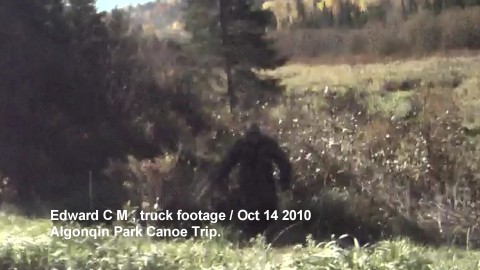 The witness supposedly attached a GoPro camera to the bumper of his truck and captured this amazing image of a possible Bigfoot from the Algonquin Provincial Park in Ontario, Canada: