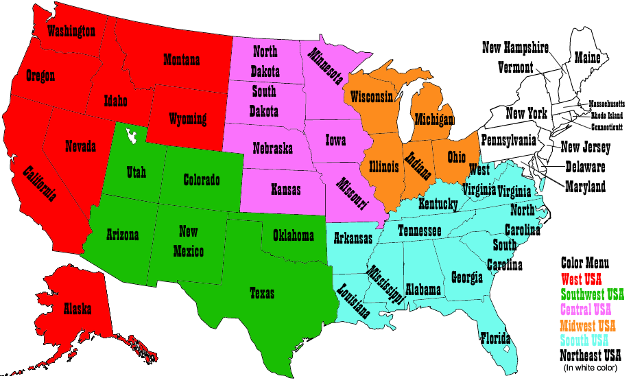 Here is also the break down of regions and the states contained within.