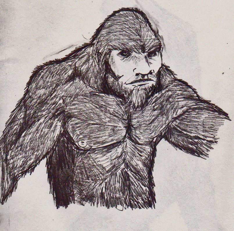 A witness sketch of the Fouke Monster from Fouke, Arkansas. This one was seen by teenagers in Smith Park around 2010. It walked by their vehicle around dusk