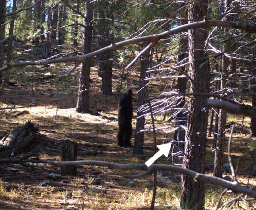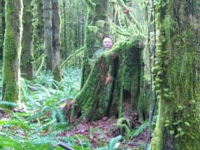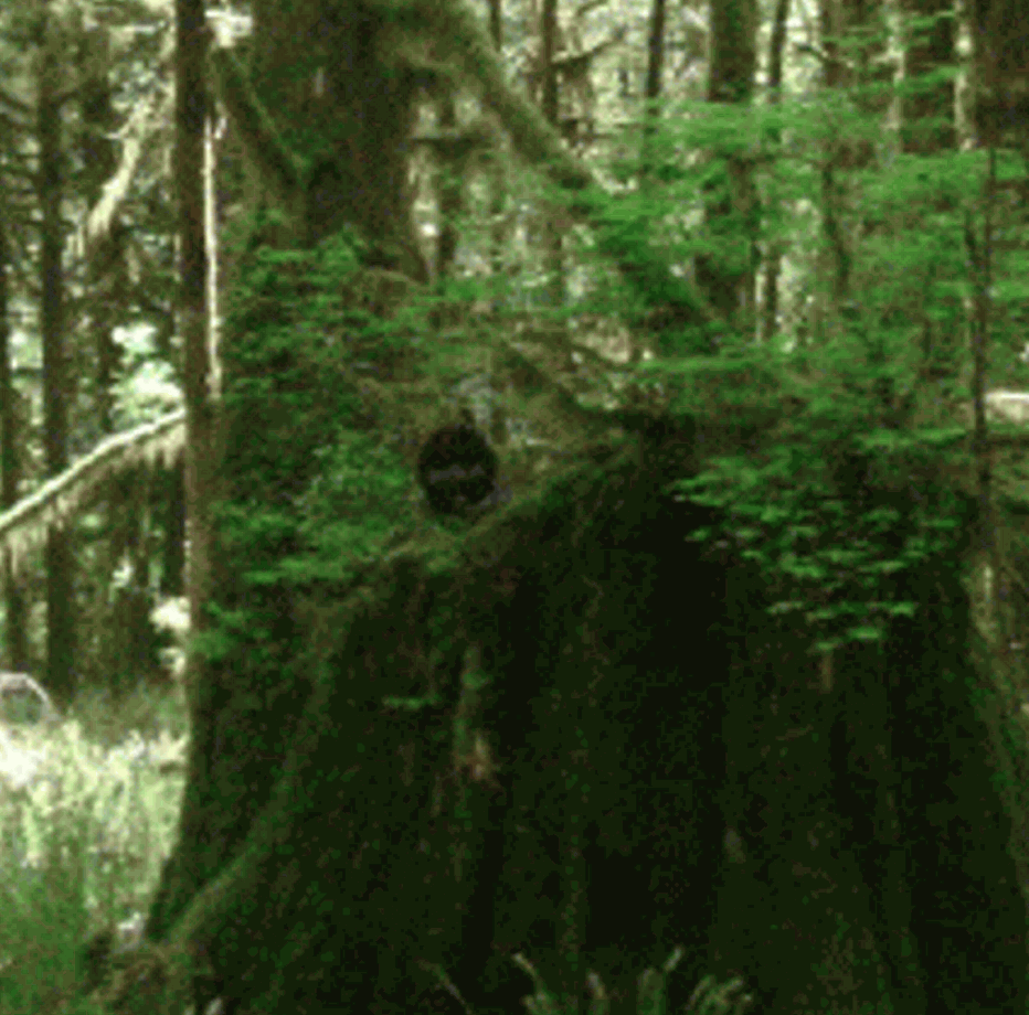 I have placed a white arrow on the photo to show the figure of someone standing beyond the tree branches. Two things came to mind when I saw this image ... one is that Brisson had claimed prior to the stump photos that he had seen a 14' - 15' tall Sasquatch in Golden Ears Park and the other thing that stuck in my mind was that he also claimed that he didn't know anyone who knew how to PhotoShop a photo when being asked about the head on the stump photos. Obviously the good unnamed friend in Oregon knows how to PhotoShop a photo for I don't believe for a moment that someone was just a few feet away from a 15' tall Sasquatch while someone else took just one photo ... if you know what I mean. (sigh~)
