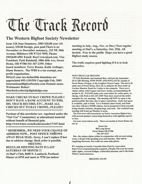 This is a compilation of Ray Crowe's newsletter, "The Track Record" written over a 16 year time span, July 1991-August 2007.