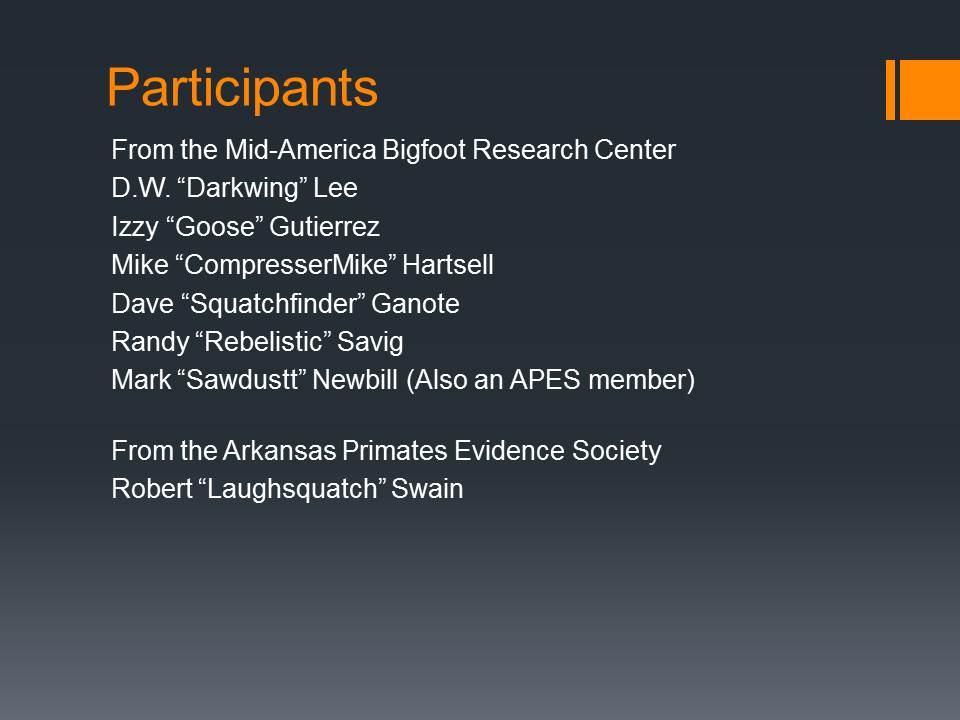 Participants: CompresserMike, Squatchfinder, Sawdustt, Cherokee Rose, Darkwing