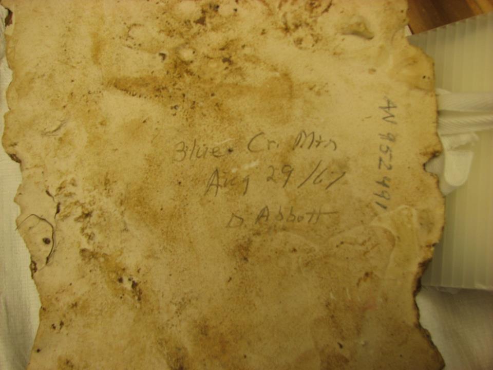 Track cast of one of the Blue Creek Mountain, California prints taken by John Green and Don Abbott in 1967. This cast is at the Royal BC museum. In the film you see where the two track lines cross. There was a track cast of both prints done in one cast. This is stored away somewhere in the museum.