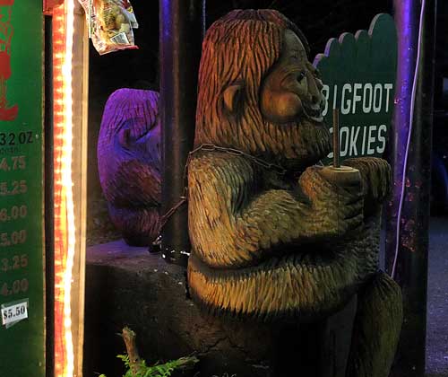 A huge (like in 12 foot tall) carved wooden Bigfoot statue that stands tall at the Espresso Chalet in Index. Chronicle photo