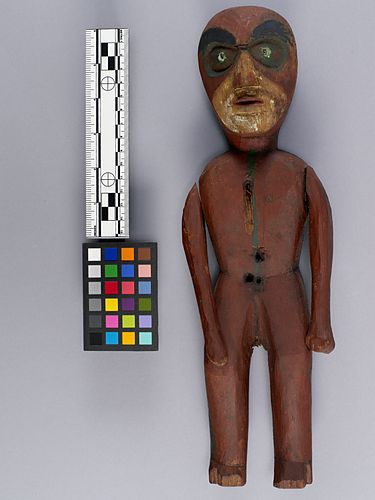 brow with deep set eyes, and a ape like visage. The second figure shows a human faced