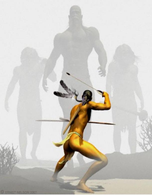 “Si-Te-Cah” or Saiduka literally translates as “tule-eaters” in the Northern Paiute language. The tule is a fibrous water plant, which according to legend, the giants wove into rafts to escape attacks by the Paiute. They used the rafts to navigate across what remained then of Lake Lahontan, an ancient lake that once covered most of northern Nevada during the last ice age. As the Paiute tale goes, after years of warfare, all the tribes in the area joined together to rid themselves of the Si-Te-Cah. One day, as the tribes chased down the last remaining red-haired giants, they took refuge in a cave. The Paiutes demanded their enemy come out of the cave and fight, but the giants refused. The coalition of tribes proceeded to shoot arrows at them while starting a large fire at the mouth of the cave. The smoke drove out a few who died in a hail of arrows while the rest were all either burned alive or asphyxiated. Over time, the entrance to the cave would collapse leaving it accessible only to bats and cut off from human contact.