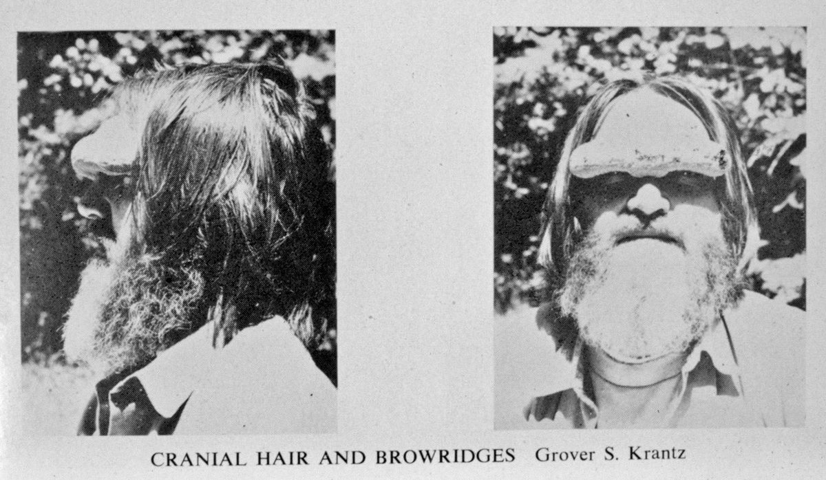 “He came to the conclusion that it kept the hair out of your eyes,” Meldrum said. His theory was that once hominids started growing longer head hair, they couldn’t figure out how to tie it behind their head or put a headband on, so there was strong selection for these heavy brow ridges to keep the hair out of their eyes. Meldrum thinks Krantz probably wore the visor as a big joke and that his wry sense of humor was often lost on some people.