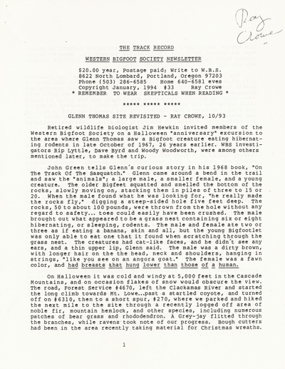 This is a compilation of Ray Crowe's newsletter, "The Track Record" written over a 16 year time span, July 1991-August 2007.