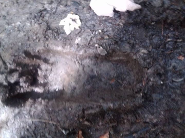 Woman and her two kids found this near Pymatuming Lake in North Western Pa a few days ago and sent it to me. She said it freaked them out and they vacated the area immediately. I know the pic is not very clear but any thoughts???